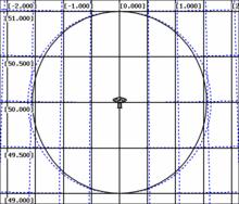 The Figure Geo Warping Radar to CIB Projection shows dashed the maximal range circle for a range of 111 km or 60 miles using the radar projection. Such a range is typical for long range coastal surveillance radars. As stated in the last section this is a perfect circle also on the computer screen. The solid line ellipse shows the same range circle for the CIB projection.