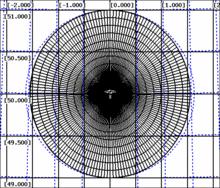 The Figure Geo warping grid depicts the solution to the problem. The circular radar coverage area is divided into a circular grid. Only the corner points of the grid are geo warped which drastically reduces the computation time. Coordinates within a grid tile are computed by a weighted bilinear interpolation of the grid corner points. As geographical projections are typically non-linear functions this introduces a certain error for the radar video display position. Keeping this error sufficiently below the radar measurement resolution makes sure that this is no restriction for the radar video display quality. The grid tile size has to be computed once for a radar position and a given projection. Thus, the grid is typically computed once for a static radar and only more often for moving radars such as on ships.