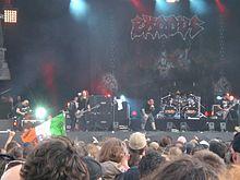 Since its formation, Exodus has released ten studio albums, two live albums, one compilation album, and a re-recording of their first album. Along with Metallica (whose longtime lead guitarist Kirk Hammett was an original member of Exodus), they are often credited as pioneers of the Bay Area thrash metal scene,[2][3] and have sold over five million albums worldwide.[4] Exodus is also considered to be one of the "big eight" of thrash metal, along with Metallica, Megadeth, Slayer, Anthrax, Testament, Overkill and Death Angel.[5][6][7][8][9] The band had particular success in the mid-to-late 1980s with their first three studio albums: Bonded by Blood (1985), Pleasures of the Flesh (1987) and Fabulous Disaster (1989). The critical praise given to Fabulous Disaster garnered attention from major labels, including Capitol Records, with whom Exodus signed in 1989. The band released two more studio albums (Impact Is Imminent in 1990 and Force of Habit in 1992) before disbanding in 1994. After temporarily reuniting in 1997–1998, Exodus reformed once again in 2001, and since then, they have released five more studio albums, starting with and including Tempo of the Damned (2004), which reignited Exodus' popularity and is considered to be a key part in the early 2000s thrash metal revival movement.[10][11][12] The band's upcoming eleventh studio album, Persona Non Grata, is due for release in the summer of 2021.[13]