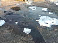 - ^ Compare to southern Sweden where its large number of lakes would according to Alfred Gabriel Nathorst be indebted to the creation of basins due to the stripping of an irregular mantle of weathered rock by glacier erosion.[10]