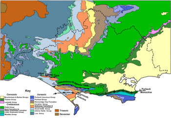 The Variscan orogeny is the oldest event for which there is evidence in Dorset, forming a major series of thrust faults in Carboniferous and older rocks. These thrusts trend west–east, dip moderately towards the south and have controlled later basin development and subsequent phases of inversion. During the Permo-Triassic the area was affected by a phase of rifting that reactivated the older thrusts in extension.[74] These extensional faults were themselves reactivated during further rifting in Jurassic to early Cretaceous times. The area experienced the effects of the early stages of Alpine collision during the Late Cretaceous to Palaeogene, with reverse reactivation of many of the extensional faults, creating the most visible of the structures in the Dorset area, such as the Purbeck Monocline.