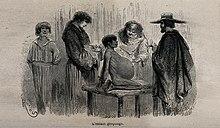 In more recent times, according to Dixie's Forgotten People: the South's Poor Whites, geophagia was common among poor whites in the Southeastern United States in the 19th and early 20th centuries, and was often ridiculed in popular literature. The literature also states, "Many men believed that eating clay increased sexual prowess, and some females claimed that eating clay helped pregnant women to have an easy delivery."[10] Geophagia among Southerners may have been caused by the high prevalence of hookworm disease, of which the desire to consume soil is a symptom.[11] Geophagia has become less prevalent as rural Americans assimilate into urban culture.[9] However, cooked, baked, and processed dirt and clay are sold in health food stores and rural flea markets in the American South.[12]