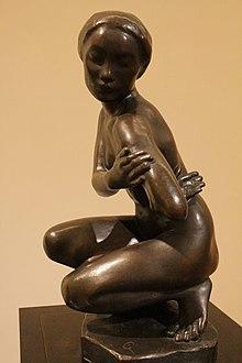 Kolbe also made ninety-nine prints, beginning with lithographs around 1900, primarily literary illustrations. In 1919–1920, Kolbe practically did not work as a sculptor. During this time small-size sculptures and drawings became central in his works.[5] In the 1920s, encouraged by Cassirer, he made drypoints of dancers and nudes in motion, subjects he favored in his sculpture.[6] His work was part of the sculpture event in the art competition at the 1928 Summer Olympics.[7]
