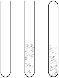 A simple sealed tube (Carius tube). Thick-walled glass tube (left), filled with reaction mixture (center) and sealed tube (right).