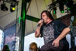 George "Corpsegrinder" Fisher (born July 8, 1970)[1] is an American death metal vocalist who is the lead singer for the American death metal band Cannibal Corpse, the melodic death metal band Paths of Possession, and the extreme metal supergroup Serpentine Dominion. He recorded two albums with Florida's Monstrosity before leaving and joining Cannibal Corpse in late 1995, replacing vocalist Chris Barnes, who is now the vocalist for Six Feet Under.