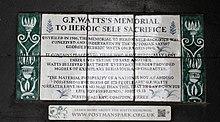 An admirer of royalty – he had painted Prince de Joinville and Edward, Prince of Wales – Watts proposed, in 1887, to commemorate the Golden Jubilee of Queen Victoria by creating a Memorial to Heroic Self-Sacrifice to commemorate ordinary people who had died saving the lives of others, and who might otherwise have been forgotten. The scheme was not accepted at that time, but in 1898 Watts was approached by Henry Gamble, the vicar of St Botolph's Aldersgate church. He suggested the memorial could be created in Postman's Park in the City of London.