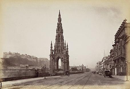 The Scott Monument has been visited from every land; engravings of it are diffused over the wide earth; and as long as it stands in its majestic and imposing beauty, the pilgrims of future centuries, who gaze upon it in silent admiration, will connect the name of its builder with the thought of him who it commemorates.[7]