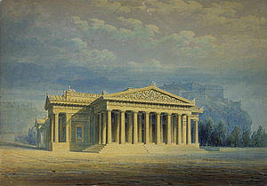 In 1836 a competition was launched (by a committee of "Noblemen and Gentlemen")[4] to design a monument to the leading Scottish author Sir Walter Scott, who had died in 1832, to be erected in Edinburgh. Several leading architects had already been invited to submit designs, but none was considered adequate. The competition's three best designs would each receive a prize of 50 guineas.[14]
