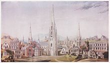 Despite these distinguished connections the family was not well-heeled. Young George O'Brien may have been trained by a brother as a civil engineer. His parents died when he was young and it seems that by a very early age he was in Melbourne, Australia. Views of the town dated 1839 and 1840 survive in the collection of the state library. It seems he left soon afterwards but was back by 1850 arriving from London on the Midlothian. He worked as a draughtsman in the surveyor's office and in 1853 married Jane Mashford at St. James' church Melbourne. He was active in the Victoria Fine Arts Society and by 1854 was advertising his services as an architect and surveyor. He exhibited paintings in 1856 and 1858 and nine signed and dated watercolours of St. Kilda and nearby places in Melbourne are recorded.