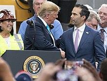 He was ranked one of "Newsmax's 50 Most Influential Latino Republicans" in 2016.[33] His father ran in the 2016 Republican presidential race, but later dropped out. After his father's exit from the race, Bush campaigned for Donald Trump as chairman of the Texas Republican Party's effort on behalf of Trump. Most of the remainder of Bush's family refused to campaign for Trump.[34]