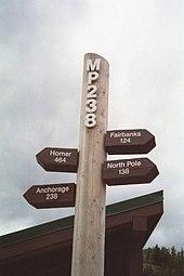 In the "Mile" column, the first number is the actual mileage of the Parks Highway, and the second mile is based on the mileposts along the highway itself.