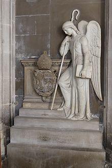 Tomline had inherited further property before he died of apoplexy at Kingston Hall, near Wimborne, Dorset and his estate was worth £200,000 (equivalent to £17,442,134 in 2019).[13] He was buried in Winchester Cathedral. His monument was sculpted by Richard Westmacott (the younger).[14]