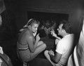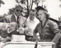 Esther Williams with George Sidney in glass bottom boat during filming of "Jupiter's Darling" at Silver Springs.