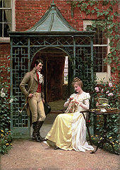 Heyer's earliest works were romance novels, most set before 1800.[25] In 1935, she released Regency Buck, her first novel set in the Regency period. This bestselling novel essentially established the genre of Regency romance.[26] Unlike romantic fiction of the period by other writers, Heyer's novels featured the setting as a plot device. Many of her characters exhibited modern-day sensibilities; more conventional characters in the novels would point out the heroine's eccentricities, such as wanting to marry for love.[27] The books were set almost entirely in the world of the wealthy upper class[28] and only occasionally mention poverty, religion, or politics.[29]