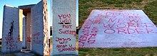 In 2008, the stones were defaced with polyurethane paint and graffiti with slogans such as "Death to the new world order".[6] Wired magazine called the defacement "the first serious act of vandalism in the guidestones' history".[2]