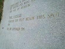 The words appear as shown under the time capsule heading; no dates are engraved.