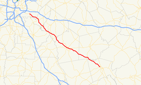 In Monticello, SR 212 intersects SR 16 (Washington Street). The two routes run concurrently to the east. In downtown Monticello, the concurrency meets SR 11/SR 83 (Forsyth Street). The two routes join the concurrency. One block later, SR 11 leaves to the southeast, following East Washington Street. Another block later, SR 83 departs the concurrency to the northeast, following North Warren Street. Just east of the town, SR 16 departs to the east, while SR 212 continues its southeastern routing. A short while later is an intersection with SR 380 (Perimeter Road), which serves as a partial bypass of Monticello. SR 212 enters Putnam County, where it has an intersection with US 129/SR 44 (Gray Road) at the eastern edge of the Oconee National Forest. It crosses over part of Lake Sinclair, and parallels a Norfolk Southern Railway track, before it meets its southeastern terminus, an intersection with SR 22 in the northwestern part of Milledgeville. Its routing bisects the area between Interstate 75 (I-75) and I-20.[1]