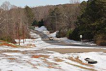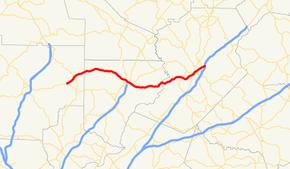 By 1953, a U-shaped paved connecting road is shown traveling north for about 4 miles (6.4 km), and then east for another 4 miles (6.4 km) from SR 20 to SR 9, which then continues as SR 141. This routing appears to correspond to portions of today's Hurt Bridge Road from SR 20 north to Holbrook Road, and a portion of roadway curving northeast to just west of Matt, which does not appear to exist today.[8] By 1966, the west-to-east portion of this connecting road had been extended another 4 miles (6.4 km) further west, and was by then signed as SR 141, but did not yet connect to SR 20. This extension appears to travel to what is today called Heardsville Road, which travels south-to-north from SR 20 through the communities of Ducktown and Heardsville to intersect with today's SR 369.[9] Sometime in 1970, the route as it exists today was not only completed and extended to its intersection with SR 20 near Macedonia, but was also signed as SR 369.[1][2]
