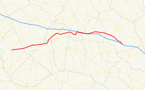 SR 46 begins at an intersection with US 341/SR 27 (Hawkinsville Highway), just west of Eastman, in Dodge County. This intersection also marks the northern terminus of US 341 Bus. and SR 27 Bus. These three highways head concurrently to the northeast for just over 1,000 feet (300 m), then curve to the east to enter Eastman. At Ogden Street, they head southeast for a short while, then turn left on 5th Avenue. About 1,500 feet (460 m) later, they intersect US 23/SR 87/SR 117 (Oak Street). Here, US 341 Bus./SR 27 Bus. depart to the southeast, while SR 117 travels concurrent with SR 46 for a few blocks. At Main Street, the two highways diverge. Page Street is the southern terminus of SR 46 Conn. SR 46 heads east-northeast, out of the city, passing Heart of Georgia Regional Airport. The highway travels through rural areas of the county and meets the northern terminus of SR 165 (Chauncey–Dublin Highway), before entering Laurens County. It continues to the northeast and intersects SR 126. The two highways head concurrently to the northeast past an intersection with US 319/US 441/SR 31, and then curve to the east-southeast. Less than 1 mile (1.6 km) later, SR 126 splits off to the southeast. SR 46 travels through rural areas of the county, cuts across a corner of Wheeler County and another corner of Laurens County, before re-entering Wheeler County. The highway curves to the northeast and intersects SR 19. Then, it crosses over the Oconee River into Treutlen County. A few miles later is an intersection with SR 199. In Soperton, it intersects SR 29 (West Main Street). Two blocks later is an intersection with SR 15/SR 78 (West Louisiana Avenue). After that, it curves to the east-northeast and intersects US 221/SR 56. Just before leaving town, SR 46 curves to the southeast. It passes the Treutlen County Airport. A few miles later, it meets the southern terminus of SR 227. The highway curves to the northeast and meets the western terminus of SR 298. The highway passes by Wildwood Lake and intersects SR 86, just before leaving the county. SR 46/SR 86 travel concurrently to the southeast and intersect SR 297 on the Treutlen–Emanuel county line. Just before entering Oak Park, the two highways curve to the east-northeast. In the city, they intersect US 1/SR 4 (Harrington Street). At this intersection, SR 86 follows US 1/SR 4 south into the main part of the city, while SR 46 follows US 1/SR 4 north through the northern parts of the city. They cross over the Ohoopee River and have an interchange with I-16 before SR 46 splits off and begins to parallel the interstate for the rest of its length. In fact, the two highways are never more than 3 miles (4.8 km) apart from each other. SR 46 leaves Oak Park and travels through rural areas of the county before entering Candler County. The highway travels through mostly rural areas for the rest of its length, with few exceptions. After an intersection with SR 57, it curves to the east-northeast and enters Metter. At College Street, SR 23 begins a concurrency for a few blocks. At Lewis Street is an intersection with SR 121. Here, SR 23 splits off to the south. One block later is the northern terminus of SR 129 (South Leroy Street). After the highway leaves Metter, it travels through Pulaski before entering Bulloch County. SR 46 travels through Register and intersects US 25/US 301/SR 73 less than 1 mile (1.6 km) later. It passes Hickman Pond and crosses through a portion of Eagle Creek Golf Course, which is just northeast of Kennedy Pond. The highway curves back to the southeast, resuming its close proximity to I-16. It reaches an intersection with SR 67, south-southeast of the unincorporated community of Denmark, and turns south to run concurrent with SR 67. A little over one mile later, the two highways cross over I-16 (exit 127), where SR 46 meets its eastern terminus as SR 67 continues to Pembroke.[1]