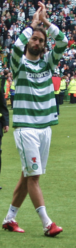 Samaras was given the number 9 shirt and made his debut on 4 February, in a 5–1 win in the Scottish Cup over Kilmarnock. He scored the final goal of the game after coming on as a substitute.[49] On 20 February, he came on as a substitute in Celtic's 3–2 defeat to Barcelona, this was his first ever Champions League match.[50] A week later he scored the winner in a 2–1 win over Inverness Caledonian Thistle to help Celtic keep up the pressure on league leaders Rangers.[51] He then scored in Celtic's next match, a 2–0 win over Hibernian, after coming on as a substitute.[52] Samaras' next goal came on 23 March, he again came on as a substitute and rounded off the scoring in a 3–0 win over Gretna.[53] On 19 April, he scored the only goal of the game as Celtic beat Aberdeen 1–0, and moved to the top of the league for the first time in 2008.[54] The next month, on 3 May, Samaras again came on as a substitute and scored the winner. His goal gave Celtic a 2–1 victory over Motherwell and kept up Celtic's late challenge for the league title.[55] Celtic won the title on the last day of the season, 22 May, by beating Dundee United 1–0. Samaras came on as a late substitute and collected his first winners' medal after the match.[56]