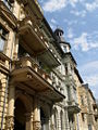 Like its western neighbour-city Jena, Gera is a protracted city along a wide valley in south-northern direction. The historic city centre is quite small and located between Sorge in the north, Nicolaistraße in the east, Stadtgraben in the south and Reichsstraße in the west. It survived World War II, but during the 1960s and 1970s, the GDR government demolished larger inner-city areas to rebuild them with modern concrete architecture, which marks the view of Gera's centre, particularly in the north-west until today. Between 1870 and 1930, the city was largely extended in all directions. As distinct from other German cities, there is no citywide spatial separation between the worker's quarters and the upper-class mansion districts, instead, the mansions and the tenements are situated near to each other, spread over all the districts. The hilly areas and those next to the river and the parks are more upscale, whereas the areas next to the railway and the factories are more working-class styled. Nevertheless, the Gründerzeit architecture is quite diverse and interesting in Gera. Most buildings were extensively refurbished after 1990. Especially Gera's mansion architecture from the 1900s and 1910s is unique. The 1920s brought some modern-style Bauhaus buildings to the then rich city. During the GDR period, urban growth was handled by establishing big Plattenbau settlements on the city's periphery, like the Lusan district in south and the Bieblach district in north.