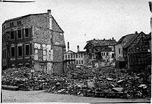 After the Nazi takeover of Germany, the Jewish community of Gera was destroyed, the synagogue burnt down in the Kristallnacht in 1938 and the city's Jews emigrated or were murdered in concentration camps. A month before the end of World War II, on 6 April 1945, U.S. bombing destroyed parts of the city and killed 514 residents. Some 300 buildings were hit, including the Osterstein castle and several historic buildings in city centre, many of which weren't rebuilt after the war. U.S. forces occupied Gera on 14 April 1945 but were replaced by the Soviets on 1 July 1945.[3]