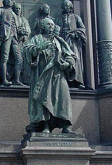 Van Swieten was a precocious student, finishing Latin school at the age of 12, around the time he became an orphan on July 8, 1712.[5] His father had appointed two friends as guardians, Adriaan Duyvens and Arnold Coops, and, when in Leiden, Van Swieten would live at Coops' house until 1727. He had already enrolled at Leiden University to study philosophy, though at the age of 14, he studied a few months in Leuven (September 1714 – January 1715) and from 1715 he set his mind on pharmacy. Between November 1715 and December 1716 he was a resident pupil of the pharmacist Laurens Tatum in Amsterdam, breaking of this education when he contracted smallpox.[6] Back in Leiden he enrolled at the University again and became a resident pupil with the pharmacist Nicolaas Stam, whose father had introduced Herman Boerhaave to chemistry. After three years, in 1720, he became a pharmacist; the following 5 year he not only ran a pharmacy, but also studied medicine at Leiden University. Here he almost exclusively followed classes by Herman Boerhaave and Bernhard Siegfried Albinus.[7] With Albinus as his advisor, he obtained his medical doctorate in July 1725 with a dissertation on the structure and function of arteries (De arteriae fabrica et efficacia in corpore humano).[8]