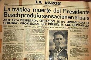 - ^ a b "Conmoción y duda: ¿fue la muerte de Germán Busch un suicidio?". www.paginasiete.bo (in Spanish). Retrieved 4 October 2020.