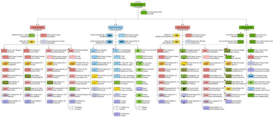- Navy Blue: Multinational Units, Officer Cadet Battalions, Navy and Air Force Security Units