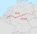 Map showing the Uerdingen line, which divides Low German from High German.