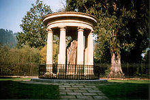 - the "old tree" (1742–1892), re-planted in 1811. The trunk now is held in a templet in the surrounding garden.