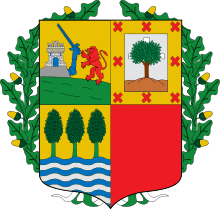 An oak tree is depicted on the heraldic arms of Biscay and subsequently on the arms of many of the towns of Biscay. An oak leaf logo is used by the local government of Biscay. The logo of the Basque nationalist party Eusko Alkartasuna has one half red and the other green, the colors of the Basque flag. An old version of the logo of the Basque nationalist youth organisation Jarrai also display oak leaves. The Basque authorities present descendants of the tree as a symbol of friendship to Basque diaspora groups and related cities.