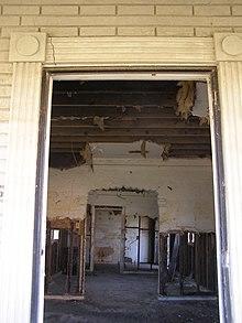 After leaving Gentilly, Sister Morgan roomed in various houses, mostly in the Lower Ninth Ward, an historically African American neighborhood in Orleans Parish. Eventually she settled at 5444 North Dorgenois street in the Lower Ninth, in a single shotgun house with the owner of the property, Jennie Johnson.[6] The lawn of the property was allegedly covered in four leafed clovers,[6] a detail that can be glimpsed in black and white photographs of the property.[6] She named it the "Everlasting Gospel Mission", and turned the first room of the house into a prayer room where she would give sermons. Her paintings adorned the white walls of the prayer room, which also contained a small desk, a tapping stick, musical instruments and her painted paper megaphones that she would use to preach.[7]
