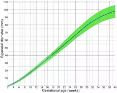 - ^ Tunon, K.; Eik-Nes, S. H.; Grøttum, P.; Von Düring, V.; Kahn, J. A. (2000). "Gestational age in pregnancies conceived after in vitro fertilization: A comparison between age assessed from oocyte retrieval, crown-rump length and biparietal diameter". Ultrasound in Obstetrics and Gynecology. 15 (1): 41–46. doi:10.1046/j.1469-0705.2000.00004.x. PMID 10776011. S2CID 20029116.