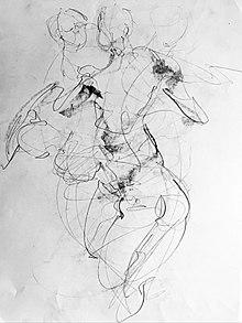 A gesture drawing is a laying in of the action, form, and pose of a model/figure. Typical situations involve an artist drawing a series of poses taken by a model in a short amount of time, often as little as 10 seconds, or as long as 5 minutes. Gesture drawing is often performed as a warm-up for a life drawing session, but is a skill that must be cultivated for its own sake.