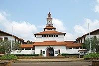 Osagyefo Dr. Kwame Nkrumah, as he became known, played an instrumental part in the founding of the Non-Aligned Movement, and in establishing the Kwame Nkrumah Ideological Institute to teach his ideologies of communism and socialism.[51] His life achievements were recognised by Ghanaians during his centenary birthday celebration, and the day was instituted as a public holiday in Ghana (Founder's Day).[52]