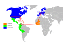 Other European traders had joined in gold trading by the mid-17th century, most notably the Swedes, establishing the Swedish Gold Coast (Svenska Guldkusten), and Denmark-Norway, establishing the Danish Gold Coast (Danske Guldkyst or Dansk Guinea).[38] Portuguese merchants, impressed with the gold resources in the area, named it Costa do Ouro or Gold Coast.[38] Also beginning in the 17th century — in addition to the gold trade — Portuguese, Dutch, English, and French traders also participated in the Atlantic slave trade in this area.[39]