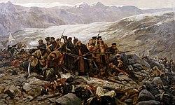 During the First Anglo-Afghan War (1839–1842), Ghilji tribesmen played an important role in the Afghan victory against the British East India Company. On 6 January 1842, as the British Indian garrison retreated from Kabul, consisting of about 16,000 soldiers, supporting personnel, and women, a Ghilji force attacked them through the winter snows of the Hindu Kush and systematically killed them day by day. On 12 January, as the British regiment reached a hillock near Gandamak, their last survivors—about 45 British soldiers and 20 officers—were killed or held captive by the Ghilji force, leaving only one British survivor, surgeon William Brydon, to reach Jalalabad at the end of the retreat on 13 January.[25][26]