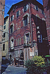 Puccini was born Giacomo Antonio Domenico Michele Secondo Maria Puccini in Lucca, Italy, in 1858. He was the sixth of nine children of Michele Puccini (1813–1864) and Albina Magi (1830–1884). The Puccini family was established in Lucca as a local musical dynasty by Puccini's great-great-grandfather – also named Giacomo (1712–1781).[2][3] This first Giacomo Puccini was maestro di cappella of the Cattedrale di San Martino in Lucca.[4] He was succeeded in this position by his son, Antonio Puccini,[4] and then by Antonio's son Domenico, and Domenico's son Michele (father of the subject of this article).[2] Each of these men studied music at Bologna, and some took additional musical studies elsewhere.[2][4] Domenico Puccini studied for a time under Giovanni Paisiello.[2] Each composed music for the church. In addition, Domenico composed several operas, and Michele composed one opera.[2] Puccini's father Michele enjoyed a reputation throughout northern Italy, and his funeral was an occasion of public mourning, at which the then-famed composer Giovanni Pacini conducted a Requiem.[5]