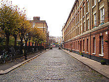 The flats were built by the Metropolitan Association for Improving the Dwellings of the Industrious Classes in 1880 and named in honour of Thomas Field Gibson, who was a Director of the Association from its inception.[1][2][3] It originally comprised three brick blocks of flats and a row of 'cottages' which originally housed older relations of people living in the blocks. A further block (the 'paddlesteamer' block) was built later. They were originally called Gibson Buildings and were some of the first quality dwellings for working and lower-middle-class families in London.