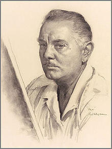 Gillette Elvgren (March 15, 1914 – February 29, 1980) was an American painter of pin-up girls, advertising and illustration. Best known for his pin-up paintings for Brown & Bigelow, Elvgren studied at the American Academy of Art.[1][2] He was strongly influenced by the early "pretty girl" illustrators, such as Charles Dana Gibson, Andrew Loomis, and Howard Chandler Christy. Other influences included the Brandywine School founded by Howard Pyle.[3]