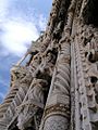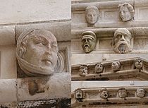 His most beautiful achievement remains the Šibenik Cathedral of St James, for which he was a chief architect from 1441 till 1473.[2] The entire building was built solely of limestone from Istria, with no wood or bricks used in the structure. The building presents all along the perimeter a hedge composed of 72 stone-carved heads. On top of this hedge, and precisely on the North side, Giorgio added two angels; at the base of this work the artist engraved his signature. The task before him was to build the choir, of which foundations had not been laid, to raise and roof the nave which was only completed to the top of the aisle vaults, and to covering the crossing by a lantern or cupola. Unfortuately lack of funding and a fire delayed the achievement of the construction.[8] From 1 July 1477 the work on the Šibenik Cathedral of St James was continued by an architect from Tuscany, Niccolò di Giovanni Fiorentino.