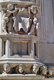 References to the artist are most common under the name Giorgio da Sebenico,[1][11][12][13][14][15][16][17][18][19][20][21] and as Giorgio Orsini,[1][11][17][22][23] particularly in Italian sources[24][25] or in older English sources.[19][20][21][26][27][28][29] There are also references to him as "Giorgio Dalmatico"[28] or as "George the Dalmatian".[30] He is rarely listed among Croatian sculptors in English-language sources.[30] In Croatia, he is known under the Croatian name of Juraj Matejev Dalmatinac.[18] The family name of Orsini was never used by the artist and it was adopted by his son, after the death of his father.[9][10][31][32]