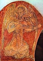 - Two angels playing the gittern for the Coronation of the Virgin.