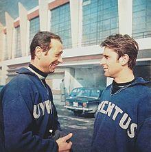 He was also known for revolutionising the role of the goalkeeper in Italy, functioning as a "sweeper keeper", due to his tendency to rush off his line to anticipate opposing strikers, or to be involved in the build-up of plays by coming out of his area to receive or play the ball out to his defenders.[3][9] In one on one situations, however, he usually preferred to remain closer to his line and position himself with his body constantly facing the shooter, in order to increase the distance between himself and his opponent, giving him more time to parry the ball; this playing style, which was later described as "geometric" rather than "reactive" by Sarti, was considered unusual for the time, but very effective.[10]