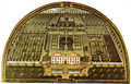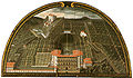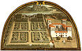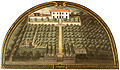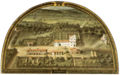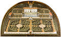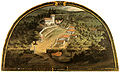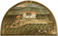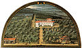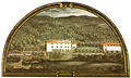 The three missing lunettes are thought to be the Villa di Artimino and perhaps the Villa Medici di Careggi. In the early twentieth century an anonymous artist completed the scheme, based on eighteenth-century vedute illustrating the villa at Careggi, that at Cerreto Guidi and Villa del Poggio Imperiale, which in the sixteenth century was still the Villa di Poggio Baroncelli.