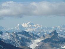 The Mt. Fairweather (officially gazetted as Fairweather Mountain in Canada but referred to as Mount Fairweather), is located 20 kilometers (12 mi) east of the Pacific Ocean in the Glacier Bay region. While most of the mountain lies within the City and Borough of Yakutat, the summit is also in Tatshenshini-Alsek Provincial Park, British Columbia (Canada), making it the highest point in that province. It is also designated as Boundary Peak 164 or as US/Canada Boundary Point #164. The mountain was named on May 3, 1778 by Captain James Cook,[33] apparently for the unusually good weather encountered at the time. The name has been variously translated. It was called "Mt. Beautemps" by La Perouse (1786, atlas), "Mte. Buen-tiempo" by Galiano (1802, map 3), "Gor[a]-Khoroshy-pogody" on Russian Hydrographic Service Chart 1378 in 1847, and "G[ora] Fayerveder" by Captain Tebenkov (1852, map 7), Imperial Russian Navy. It was called "Schonwetterberg" by Constantin Grewink in 1850 and "Schonwetter Berg" by Justus Perthes in 1882.[34] Mt. Fairweather was first climbed in 1931 by Allen Carpé and Terris Moore.[34]