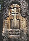 The Tlingits regard Glacier Bay as their sacred homeland. The National Park Service takes the view that "Glacier Bay National Park is the spiritual homeland of the Huna Tlingit, and Glacier Bay National Preserve is the homeland of the Ghunaaxhoo Kwaan unit of the Yakutat Tlingit Tribe".[14] The tribes' oral history supports that they were pushed out and migrated south when the glacier advanced. They moved back to the area when the Glacier retreated in the 1880s. There are 60 odd proto-historic or historic sites in the Glacier Bay, which are identified with Tlingit Indians or European Americans. They are an integral part of Northwest Coast people inferred to be belonging to Haida, Tlingit or Eyak clans. Their settlements existed even in the 1880s in Dry Bay, Excursion Inlet, Point Couverden and the Port Frederick area (now known as Hoonah) and Dundas Bay. A Tlingit cemetery of the period has also been located in the park area. Seasonal hunting, gathering and fishing was their way of life, woven around a central village, with shifting fishing and hunting camps. The food source of the natives was the rich Salmon fish resources of the area. A complex society evolved with rich artistic traditions. Tlingits claimed their fishing-dependent lifestyle was helped during the National Monument years, which kept out commercial fishing. After the area became a National Park, their fishing and hunting activities were curtailed except for certain religious exemptions.[8] However, the National Park administration is closely interacting with the Tlingits to foster their cultural heritage. They are allowed access to the park to "harvest berries, a variety of seafoods, and traditional use items such as spruce roots and mountain goat hair (for weaving traditional blankets)". In addition the park is planning to establish a Tlingit longhouse near its main office, where Tlingit culture would be fully highlighted and also facilitate holding of cultural events.[14]