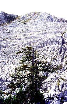 Examples of glaciokarst landscapes are found in the Dinaric Alps especially at Orjen, and in the Alps (e.g. the Kanin Plateau with the Vrtiglavica shaft).[1]