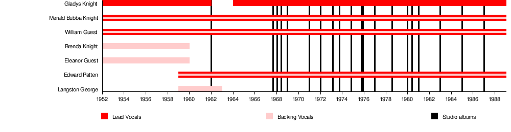 | Past members | Gladys Knight Bubba Knight William Guest Edward Patten Brenda Knight Eleanor Guest Langston George |